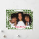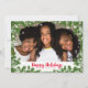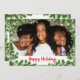 Tarjeta fotográfica Happy Holidays con agujas de pino verde y borde blanco de copos de nieve alrededor de tu foto familiar favorita. Creado por © Lesruba Designs.
