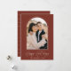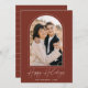Tarjeta de vacaciones moderna con tu foto vertical enmarcada por un arco punteado con fondo marrón canela. "Happy Holidays" se muestra en la escritura blanca a la moda. Personalice la parte delantera de la tarjeta agregando el nombre de su familia y el año. La tarjeta se invierte para mostrar un patrón de línea punteada en blanco.