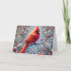 Tarjeta Festiva Snowy Red Winter Cardinal in Holly
