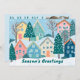 Tarjeta Festiva Snowy Village Illustration Cute CUSTOM Photo