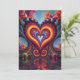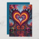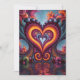 Los vibrantes patrones giratorios forman una forma cardíaca, rodeada de tendriles y orbas animadas y coloridas. Las reflexiones bailan sobre una superficie de agua abajo, amplificando la atmósfera energética y caprichosa.