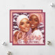 Ilumina tus vacaciones con esta conmovedora ilustración de dos hermosas hermanas afroamericanas. Una de ellas, una radiante sobreviviente de cáncer, se mantiene orgullosa con la cabeza rapada simbolizando triunfo. Ambas visten atuendos navideños cálidos y elegantes, y comparten alegría y risas en una escena nevada frente a un árbol de Navidad rosa. La paleta monocromática pastel añade un toque de elegancia. Centrada en el marco, esta imagen celebra el espíritu resiliente de una sobreviviente de cáncer y el vínculo del amor fraternal. Perfecta para difundir calidez e inspiración en esta temporada navideña. Personaliza con tu propio mensaje sincero para crear un saludo navideño único y significativo. Una tarjeta verdaderamente especial para una persona muy especial.