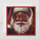 Esta imagen es una tarjeta de Navidad antigua que presenta a un sonriente Santa Claus negro. La tarjeta muestra a Santa Claus con un abrigo y sombrero rojos. Los colores de la imagen son principalmente rojos y blancos con toques de marrón oscuro. El tema general de la imagen es festivo y tradicional, representando a la figura icónica de Santa Claus durante la temporada navideña.