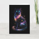 A luminous cosmic cat formed of stardust and nebulae sits against the void, its glowing eyes suggesting ancient mystery and celestial power.