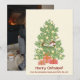 Difunde un poco de alegría festiva perfectamente felina con las divertidas ¡Felices Siestas de Gatos! Tarjeta de vacaciones de gato en árbol de Navidad. Este adorable diseño presenta a un gato naranja durmiendo tranquilamente en la parte superior de un árbol de Navidad decorado, adornado con adornos dorados y flanqueado por dos regalos envueltos debajo. Debajo de la escena acogedora, el texto dice "¡Felices Siestas de Gatos!", con una línea personalizable para agregar el nombre de su familia y hasta el nombre de su gato para un toque personal. La parte trasera de la tarjeta ofrece espacio para una foto familiar, lo que la convierte en un dulce recuerdo para amigos y seres queridos. Una elección caprichosa para los amantes de los gatos y cualquiera que disfrute un toque de humor navideño.