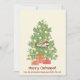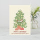 Difunde un poco de alegría festiva absolutamente perfecta con las divertidas ¡Felices Siestas de Gatos! Tarjeta de vacaciones de gato en árbol de Navidad. Este adorable diseño presenta a un gato naranja durmiendo la siesta contento en la parte superior de un árbol de Navidad decorado, adornado con adornos dorados y flanqueado por dos regalos envueltos debajo. Debajo de la escena acogedora, el texto dice "¡Felices Siestas de Gatos!", con una línea personalizable para agregar el nombre de su familia y hasta el nombre de su gato para un toque personal. La parte trasera de la tarjeta ofrece espacio para una foto familiar, lo que la convierte en un dulce recuerdo para amigos y seres queridos. Una elección caprichosa para los amantes de los gatos y cualquiera que disfrute un toque de humor navideño.