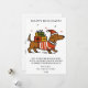 Envía un paquete de diversión navideña con esta tarjeta de Navidad de Dachshund irresistiblemente divertida. Esta adorable ilustración presenta a un alegre Dachshund que lleva un sombrero de Santa y un suéter festivo, transportando de manera hilarante una pila de regalos de Navidad envueltos en su espalda. Esta tarjeta caprichosa y única es perfecta para los dueños de Dachshund y amantes de los perros que quieren un saludo inolvidable y alegre para difundir paz, risa y calidez esta temporada navideña.