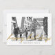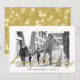 Tarjeta de foto de vacaciones de diseño personalizado con "felices fiestas" en letra manuscrita moderna en la parte frontal, diseño de bokeh dorado en la parte trasera.