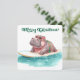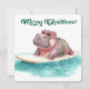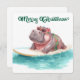 Tarjeta Festiva Surfing Hippo Bikini Christmas