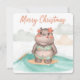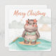 Tarjeta Festiva Surfing Hippo Bikini Christmas