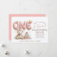 Celebrate a little one's milestone with this charming first birthday invitation featuring a festive teddy bear, pastel balloons, and wrapped gifts. The front design radiates playful warmth, while the reverse side adds a touch of whimsy with soft white polka dots on a pink background. Ideal for customizable layouts that blend cuteness and celebration.