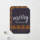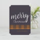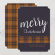 Feliz Navidad a tus amigos, familiares y seres queridos! Tarjeta de vacaciones hermosa y simple para dulces saludos con "Feliz Navidad" mostrado en una escritura blanca sobre fondo azul oscuro. Puedes personalizar la parte frontal de la tarjeta de vacaciones sin foto agregando tu nombre, apellido, o saludo adicional. La parte trasera tiene un diseño elegante de cuadros marrón, azul y naranja que también aparece en la parte frontal de la tarjeta.