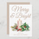 Envíe alegría festiva esta temporada con este elegante guión escrito a mano "Merry & Bright" tarjeta de vacaciones. El moderno diseño de caligrafía con un cálido tono hace que sea una elección elegante e intemporal para saludos familiares, amigos o de negocios. Personalice su interior con su mensaje para que disfrute de un agradable toque vacacional.