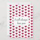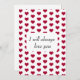Patrón de corazón rojo con la frase "Te amaré siempre". Pequeño corazón rojo en la parte posterior de la tarjeta. Rojo y blanco. Encantador para el día de San Valentín o cualquier día.