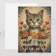 Captura el encanto de un día festivo vintage con esta adorable tarjeta que presenta a un gato que acaricia tiernamente un ramo de flores. Personaliza el mensaje para crear un regalo sincero para tu mamá, expresando tu amor y agradecimiento o celebrando el Día de la Madre con estilo.