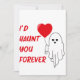 “Te perseguiría por siempre” con un fantasma sosteniendo un globo con forma de corazón.