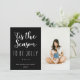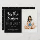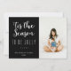 Festividad, 'es la temporada para ser Jolly, cita de tipografía de Navidades blancos, tarjeta de foto de vacaciones negras. La parte posterior de la tarjeta se complementa con el marco de puntos de doodle blanco sobre el fondo de color negro correspondiente. Espacios de texto de plantilla para mensajes y nombres.