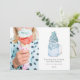 Ilustración de un batido de leche en frasco de mason azul cubierto con sprinkles de copo de nieve, malvaviscos y galleta de Navidad con forma de copo de nieve. El texto dice, "deseándote una dulce temporada navideña" Personaliza el nombre, año y foto.