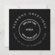 La compañía con el logotipo del Calendario 2026 Seasons Greetings Black. Envíe saludos de temporada de su empresa en un estilo clásico en blanco y negro con estas tarjetas de vacaciones cuadradas con su marca con texto blanco sobre fondo negro. El diseño simplista y elegante tiene el logotipo de su empresa en el centro del frente con tipografía curvada por encima y por debajo. Simplemente reemplace la plantilla de ejemplo con el logotipo de su empresa y personalice el saludo y el nombre de su empresa. En la parte trasera hay un práctico calendario 2026 para los destinatarios en blanco contra negro.