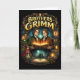 An ornate fantasy illustration of the Brothers Grimm surrounded by magical elements and iconic fairy tale imagery, celebrating the timeless legacy of their enchanted stories.