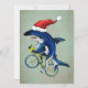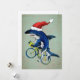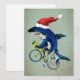 Tarjeta Festiva Tiburón Hipster En Una Bicicleta Con Gorro De Sant