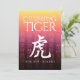Celebre el año nuevo chino con esta elegante invitación/tarjeta, que presenta la forma de letra china para el Tigre, el tercer signo/animal en el zodiaco oriental, y felicitaciones tradicionales chinas, representadas en un fondo degradado de oro a rojo.