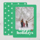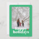 Una tarjeta de vacaciones fotográfica brillante y moderna con tipografía en negrita en blanco sobre un fondo verde colorido con un patrón de estrellas en el reverso. La foto, el nombre y el año se pueden personalizar fácilmente para darle un toque personal. Un diseño navideño divertido, colorido y contemporáneo para destacar esta temporada navideña.