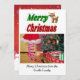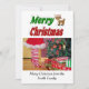 Tarjeta plana para navidades con Feliz Navidad en texto verde y rojo 3D y reno. Personalizar con su propia foto y texto. Disponible en varios estilos y tamaños.