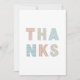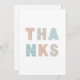 Envíe su gratitud con estilo con esta tarjeta de agradecimiento moderna que incluye letras atrevidas con estampado en cálido marrón y azul mudo. La juguetona tipografía de tiras y puntos de polka añade un toque alegre, lo que lo hace perfecto para bodas, duchas de bebé, duchas de novias, cumpleaños, graduaciones y celebraciones navideñas. Un versátil diseño de tarjetas que aporta diversión y color a sus notas de agradecimiento para la familia, amigos e invitados. Disponible como tarjeta impresa y como descarga digital.