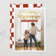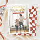 Un diseño audaz y retro de tarjetas de fotos navideñas. La parte delantera muestra una foto personalizado de su elección dentro de un elegante borde blanco. En la parte superior, "Feliz Navidad" está impreso en oro falso en una tipografía hippie de estilo retro con floridos y remolinos extravagantes. La tipografía está decorada con estrellas y destellos dibujados a mano. Debajo del texto superpuesto, hay un cartel rojo festivo con el nombre de su familia en mayúsculas en negrita. La parte posterior de la tarjeta presenta un patrón de comprobación funky, y usted tiene la flexibilidad de personalizar tanto del banner como del color del patrón para adaptarse a sus preferencias. Un diseño divertido y elegante con un toque nostálgico y un ambiente moderno. Este diseño atrevido y colorido tiene un toque lúdico, lo que lo convierte en una gran opción para compartir la alegría de las vacaciones con un toque único. Personaliza con tu nombre y foto favorita del año pasado. Siéntase libre de enviarme cualquier pregunta, por favor tenga en cuenta que no puedo modificar un pedido existente. Ver la colección vinculada en esta página para coordinar productos en papel. Busque en nuestra tienda más tarjetas de fotos de Navidad.