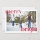 Difunde alegría navideña con esta divertida y festiva tarjeta de Navidad que presenta tipografía roja en negrita para las palabras Merry y Bright. Con dos fotos, una en cada lado de la tarjeta, y letras modernas, esta tarjeta captura una estética alegre y trendy. Perfecta para compartir tus momentos favoritos con seres queridos, esta tarjeta combina un mensaje alegre con un diseño elegante, lo que la hace destacar en cualquier colección navideña.