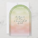 An arch shape, frames with two green arches and an image of a Goldfinch