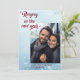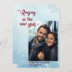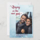 ¡Tocando en Año Nuevo! Tarjeta de compromiso fotográfico personalizada, moderna, azul y rojo. Perfecto para todas las parejas que quieran involucrarse en Navidades, Nochevieja, a finales de año y enviar entradas en esta ocasión. Foto y texto pueden ser personalizados. La plantilla también es muy útil como tarjeta "Guardar la fecha".