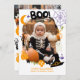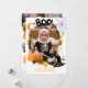 ¡Envíe deliciosos saludos de Halloween con esta adorable tarjeta de saludo de "Boo!" de Fotos de Halloween! Con un diseño lúdico con elementos caprichosos como fantasmas, calabazas, una luna creciente y el gorra de una bruja, esta carta captura el espíritu festivo de Halloween. El audaz texto "¡Boo!" agrega un toque divertido, haciendo que sea perfecto para compartir una espeluznante diversión con amigos y familiares. Esta tarjeta es totalmente personalizable, lo que le permite personalizar todos los colores para que coincidan con su estilo o tema. La parte delantera ofrece un espacio para tu foto favorita, enmarcada por lindos ilustraciones de Halloween, lo que lo convierte en un recuerdo memorable. Ya sea una foto de su mascota vestida con un traje de calabaza o de su bebé con un esqueleto, esta tarjeta seguramente traerá sonrisas. La parte trasera de la tarjeta continúa el tema con un espacio para un mensaje y foto amistosos de Halloween, rodeados de elementos más festivos. Ideal para enviar cálidos deseos y miedosos saludos, esta tarjeta combina la cortesía, la personalización y la diversión de Halloween en un diseño encantador.
