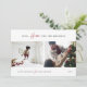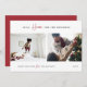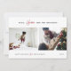 Envíe saludos alegres con estas graciosas tarjetas de vacaciones 2020. El diseño moderno y sencillo incluye dos de tus fotos favoritas, coronadas por la frase "aún en casa para las vacaciones", con letras rojas y negras de arándanos vibrantes. Agregue el saludo de su personalizado (que se muestra con Felices Fiestas), el(los) nombre(s) de la(s) familia(s) y el año a lo largo de la parte inferior.
