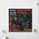 Tarjeta de acción de gracias "¡Todo de Pavo!" hermosamente dibujada a mano y coloreada con un perro cachorro negro de Newfoundland, después de una gran comida de pavo de acción de gracias. ¡Tomando una gran siesta de pavo lista para el postre!