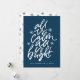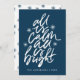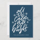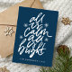 Impresiona a todos en tu lista de tarjetas de Navidades con una tarjeta festiva. La tarjeta de vacaciones sin foto muestra "Todo es tranquilo, todo es brillante" en un guión blanco con letras a mano con acentos de estrella contra un fondo marino. Personalice la parte delantera de la tarjeta agregando su nombre y el año. La tarjeta se revierte para mostrar el mensaje personalizado mostrado en texto blanco contra un marco rectangular de la marina y un fondo de copos de nieve con ráfagas de estrellas de la marina. Diseñado para coordinar con nuestra colección de tarjetas All is Calm, All is Bright vacaciones.