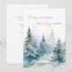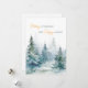 Árboles de invierno en acuarela en tonos verdes combinados con tipografía script y moderna para tarjeta de vacaciones.