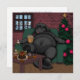 Hermosa tarjeta "¡Todo pavo!" dibujada y coloreada a mano con un cachorro de perro de raza Terranova negro, después de una gran comida de Acción de Gracias. Tomando una siesta de pavo lista para el postre!