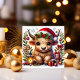 Difunde la alegría navideña con esta encantadora tarjeta plana de vacaciones con un adorable toro de las Tierras Altas vestido con un gorro de Santa, rodeado de acebo festivo y adornos. Perfecta para enviar cálidos deseos de Navidad a familiares y amigos con un toque caprichoso de alegría inspirada en la granja.