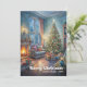 Tarjeta Festiva Traditional festive scene card red green lettering