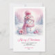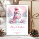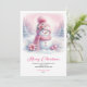 Tarjeta Festiva Trendy Pink Snowman Digital Christmas Scene Cards