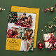 Comparte la calidez y la alegría de la temporada navideña con esta tarjeta de Navidades fotográficos muy bien diseñada. La parte delantera de la tarjeta incluye un elegante collage de tres fotos, que le permite mostrar sus momentos familiares favoritos. Un bloque amarillo dorado resalta el saludo "Feliz Navidad", junto con el espacio para un deseo de vacaciones personalizado y el nombre de tu familia. La parte trasera de la tarjeta completa el aspecto con un elegante fondo amarillo adornado con delicados acentos blancos de copos de nieve, añadiendo un toque moderno y festivo. Esta tarjeta de personalizable es la manera perfecta de enviar el más sincero aplauso de las vacaciones a sus seres queridos. Gracias por visitarnos. Si tiene alguna duda sobre la personalización, por favor envíeme un mensaje aquí o contáctame en arteartz0588@gmail.com.