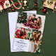 Comparte la calidez y la alegría de la temporada navideña con esta tarjeta de Navidades fotográficos muy bien diseñada. La parte delantera de la tarjeta incluye un elegante collage de tres fotos, que le permite mostrar sus momentos familiares favoritos. Un bloque de lavanda resalta el saludo "Feliz Navidad", junto con el espacio para un deseo de vacaciones personalizado y el nombre de tu familia. La parte trasera de la tarjeta completa el aspecto con un elegante fondo de lavanda adornado con delicados acentos blancos de copos de nieve, añadiendo un toque moderno y festivo. Esta tarjeta de personalizable es la manera perfecta de enviar el más sincero aplauso de las vacaciones a sus seres queridos. Gracias por visitarnos. Si tiene alguna duda sobre la personalización, por favor envíeme un mensaje aquí o contáctame en arteartz0588@gmail.com.
