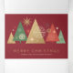 Este elegante diseño cuenta con árboles de Navidad dorados y coloridos adornados con intrincados patrones de copos de nieve. Ubicado en un rico fondo rojo, irradia calidez y sofisticación, perfecto para enviar lujosos deseos de vacaciones.