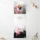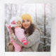 Sencillo y minimalista diseño de estilo retro de principios del siglo XX con casas amarillas, verdes y rojas con chimeneas humeantes en una colina cubierta de nieve con nieve cayendo sobre el cielo gris en la frontera blanca y azul. En el interior se presenta una tipografía de estilo retro moderno y dos plantillas de fotos.