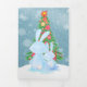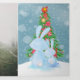 Tarjetas de felicitación navideñas plegables personalizadas de Ricaso con conejos de Pascua mirando al árbol en la nieve - una encantadora tarjeta de Navidad con acuarela que presenta una escena familiar de padre y hijo .. o abuelo .. o otro adulto con un pequeño conejo - agregue sus propias fotos y texto a esta maravillosa tarjeta de Navidad