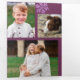 Personalice estas 6 tarjetas triples de fotos de navidad de cereza diseñadas en un profundo y rico violeta de ciruela con falsos copos de nieve morado purpurina y cree sus propias tarjetas de vacaciones de lujo para familia y amigos. La parte delantera de cada tarjeta contiene un solo copo de nieve púrpura en la parte superior, espacio para tu nombre y el año en la parte inferior y Feliz Navidad en una letra de guion blanco en el medio. Despliega la tarjeta personalizado para revelar la cubierta interior, decorada con copos de nieve más violetas arriba y abajo, donde puedes escribir un saludo de vacaciones corto en blanco. Cuando estas tarjetas triples se despliegan por completo revelan 6 plantillas de fotos, tres por cada lado, para que puedas añadir fácilmente tus preciadas fotos familiares del año pasado. El panel interior tiene espacio para añadir un pequeño mensaje de estilo de letra Navidad sobre el fondo morado de amatista oscuro si lo desea. La tendencia de color para los Navidades es el púrpura de ciruela oscura y rica, y estas elegantes tarjetas falsas purpurinas de festividad de copos de nieve ofrecen el estilo púrpura.