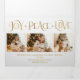 Elegant, minimal and modern "Joy + Peace + Love" timeless script graphic message in a hammered gold textured style with a three-photo template and four editable text fields on a clean white background.