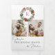 Tarjeta Festiva Tríptica Elegant Winter Botanical Wreath w/Monogram 2-Photo